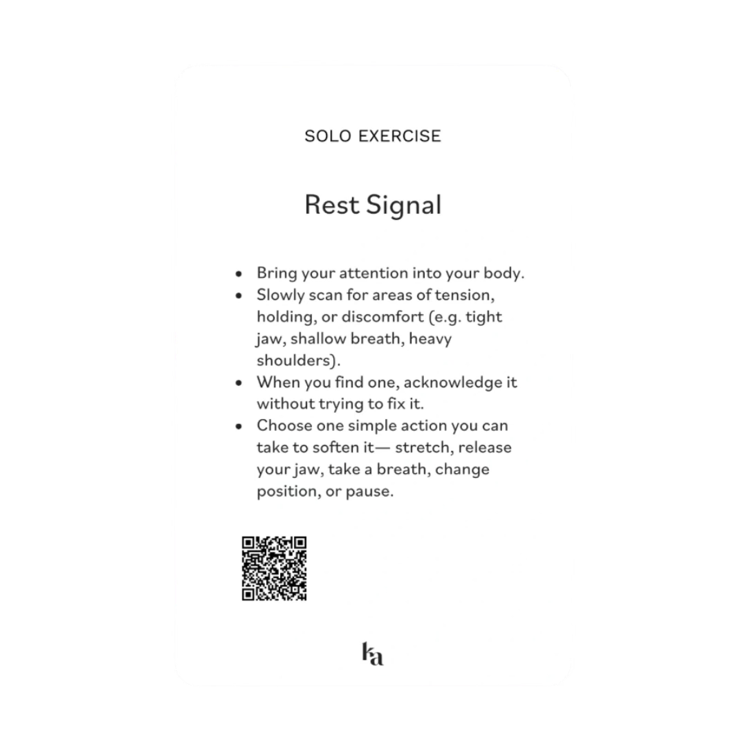Try this small practice from the card deck. Slow down, relax, and bring your attention to your body.